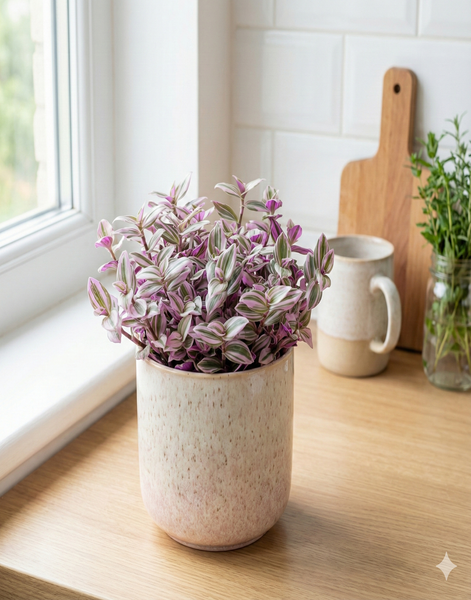 La Callisia repens 'Pink Lady' est la touche de douceur dont votre "urban jungle" a besoin. Cette petite merveille se distingue par ses milliers de petites feuilles cireuses et rondes aux nuances fascinantes : un mélange délicat de rose poudré, de crème et de vert tendre. Avec son port retombant et sa croissance rapide, elle crée rapidement un effet de cascade colorée absolument irrésistible.