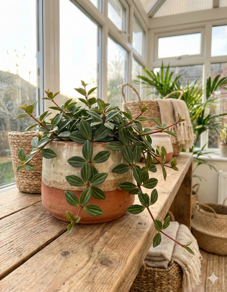 Compacte, résistante et peu exigeante, cette peperomia est idéale pour les amateurs de plantes graphiques faciles à vivre, même dans les petits espaces.